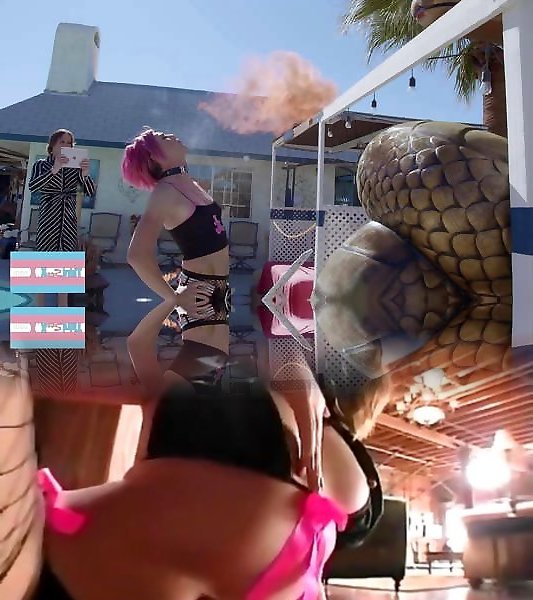 Girly-girl tgirl pussylicks swimsuit honey at pool