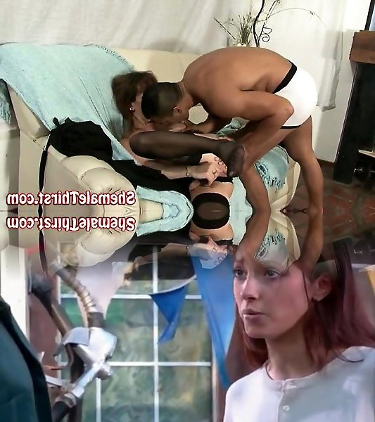 Big-boobed Ginger-haired Babe Deepthroating on a Steaming Transgender Princess