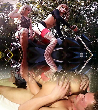 Aroused blond ladyboy buttfuck fucks another shemale