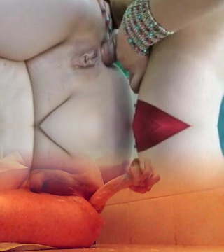Light-haired on brunette SheLesbians playing with a camera and their shelesbian sausages while kissing each other and getting firm and