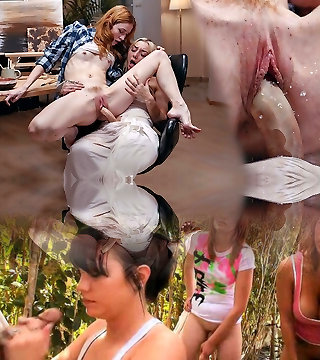 Spicy beauties fuck the biggest belt cocks and spray ejaculate