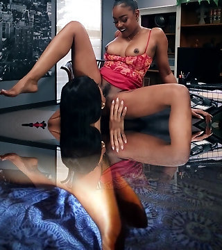 Ebony doll taking care of a white shemale hottie