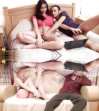 Tgirl fucked by daddy while boy toys watch