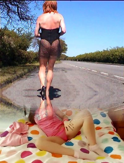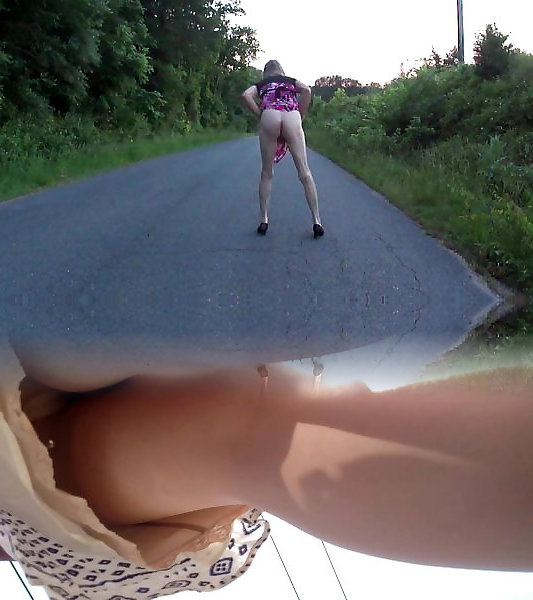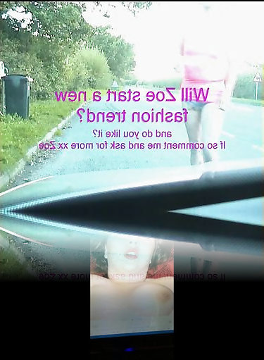 Zoe exhibitionist transvestite tramp in bumless hot trousers on the streets