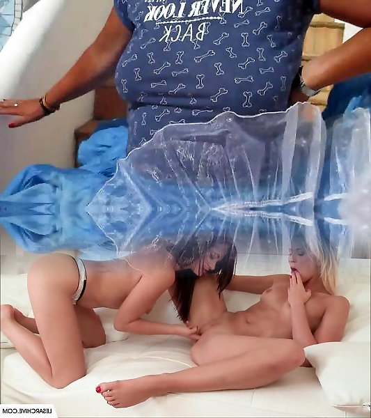 Shemale Aphrodite Adams and Sarina Havok wearing fishnet lingerie