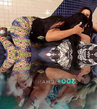Trans Latina with gigantic tits gets her sphincter rammed in the jacuzzi