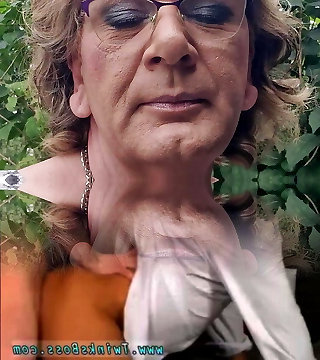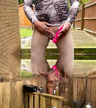 Mature Busty Hung Brit Tranny Big Spunk In The Woodshed
