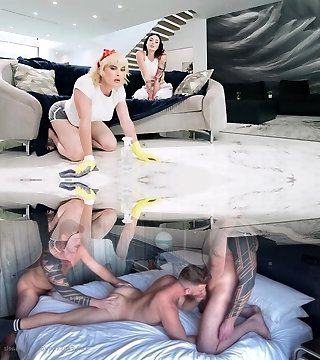 Sissy Maid does her chores in Pvc French Maid dress for her pimp