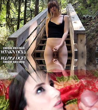 Asian pretty shemale masturbating outdoors